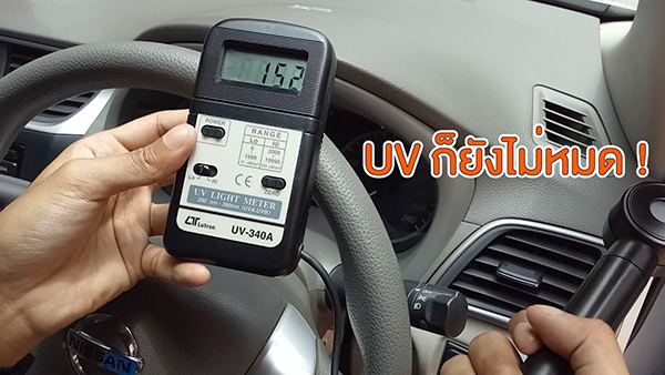 จะเห็นว่า ค่า UV สูงมาก ถึงเราจะอยู่ในร่ม หรือบนรถก็ยังมี UV อยู่ แน่นอนว่าเป็นอันตรายต่อผิวของเรามากๆ ทำให้ผิวคล้ำเร็ว และอาจจะทำให้เป็นโรคผิวหนังได้ถ้าใครต้องโดนแดดนานๆ