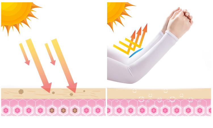 รวมทั้งยังสามารถสะท้อนแสงแดดในเวลากลางวันที่มีรังสี UVA-UVB มากกว่า 99% ทั้งนี้ปลอกแขนกันแดดมีความยืดหยุ่นได้ทุกทิศทาง สามารถเรียกได้ว่า "ยืดหยุ่น 360 องศา" สวมใส่สบายสำหรับเล่นกีฬา โดยเฉพาะกีฬาปั่นจักรยานโดยใส่เป็น