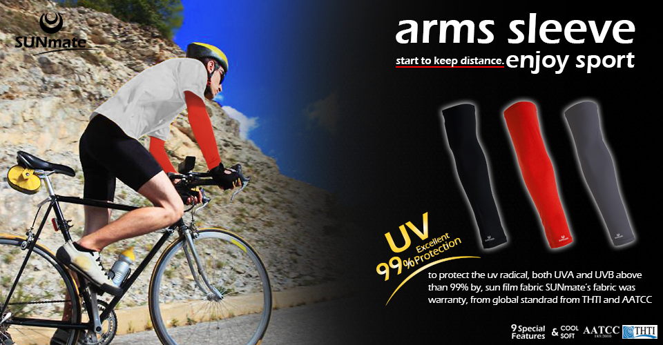 ปลอกแขนกันแดดเป็นอีกหนึ่งทางเลือกในการเป็นตัวช่วยการป้องกันรังสียูสีและแสงแดด ที่เป็นสาเหตุในการเกิดมะเร็งผิวหนัง ซึ่งกลุ่มนักปั่นจักรยาน เป็นกลุ่มคนที่นิยมสวมใส่ปลอกแขนกันแดดของทางเรามากที่สุด นอกจากนี้ยังมีช่างกล้อง คนที่เล่นกอล์ฟ และกลุ่มคนที่ออกกำลังกายกลางแจ้งประเภทต่างๆ ซึ่งทางเรามีสีของปลอกแขนให้เลือกมากมายหลายสีด้วยกัน